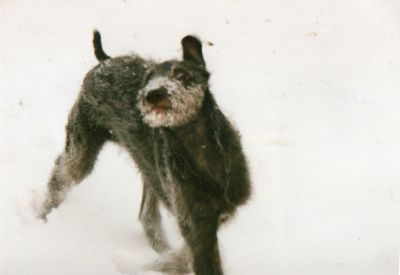 Did I really breed this cute puppy , she so loved the snow this is Champion Ardneish Scourie as a baby.