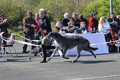 Ardneish Pantalaimon BEST IN SHOW "DEERHOUND CLUB SHOW 2012" Judge Mrs Joyce Bond Regalflight Bitches Mrs Pat Allwright Dogs both judges agreed that Panta went BIS WOW a dream held for 32 years came true :-)